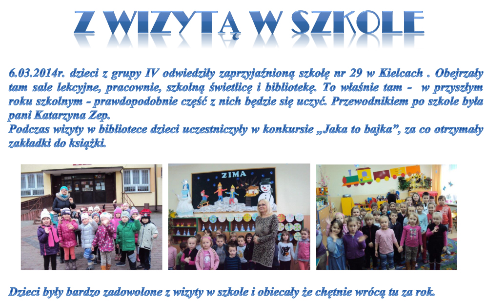 8 listopada 2013 roku dzieci z grupy V odbyły wizytę w Zespole Szkół Ogólnokształcących nr 29 w Kielcach