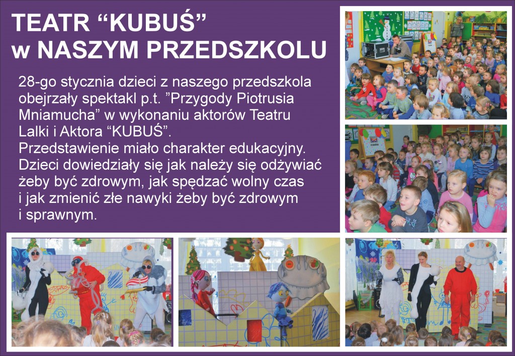 26 listopada 2013 dzieci były na spektaklu w Teatrze Lalki i Aktora "KUBUŚ"