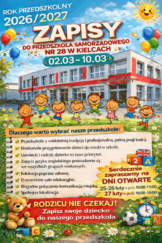 Rekrutacja do publicznych przedszkoli i oddziałów przedszkolnych w publicznych szkołach podstawowych na terenie Miasta Kielce na rok szkolny 2026/2027.